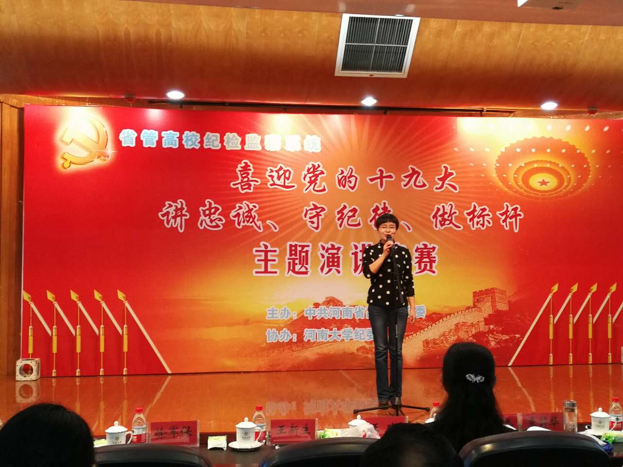 此次比赛围绕推进“两学一做”学习教育常态化、制度化,“喜迎党的十九大,讲忠诚、守纪律、做标杆”这一主题,充分展示了纪检监察干部对党绝对忠诚,信念坚定、牢记宗旨、敢抓敢管、刻苦学习,钻研业务、坚守底线、洁身自好的良好形象;通过讲纪检故事,展卫士风采,弘扬时代主旋律,激励广大纪检监察干部不忘初心、不辱使命,以良好的精神状态和优异成绩迎接党的十九大胜利召开。33所省管本科院校的46位选手参加了演讲比赛。